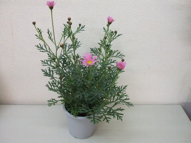 この寒い中、戸外で大きな株で咲いてる、ピンクのマーガレットを見かけました。